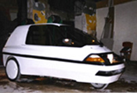 The MonoMobile concept appears to specify a very light vehicle in the weight range of the PRISM or RUF (under 1,000 lbs.). The prototype is based on a three-wheel electric vehicle built in Switzerland which carries one or possibly two occupants in tandem.